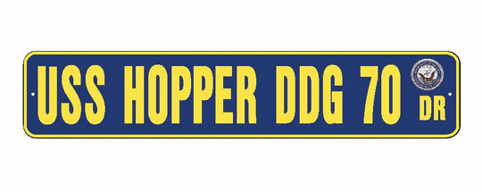 USS HOPPER DDG 70 Aluminum Street Sign Navy Blue / Yellow 6" x 30" Military USN SS002
