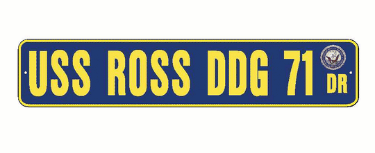 USS ROSS DDG 71 Aluminum Street Sign Navy Blue / Yellow 6" x 30" Military USN SS002