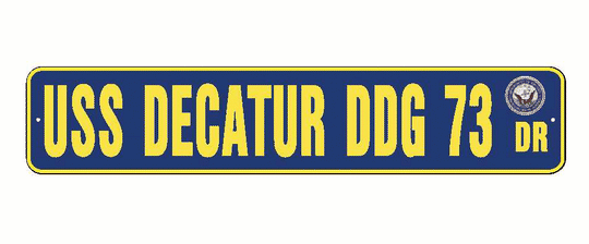 USS DECATUR DDG 73 Aluminum Street Sign Navy Blue / Yellow 6" x 30" Military USN SS002
