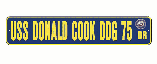 USS DONALD COOK DDG 75 Aluminum Street Sign Navy Blue / Yellow 6" x 30" Military USN SS002