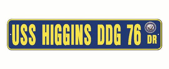 USS HIGGINS DDG 76 Aluminum Street Sign Navy Blue / Yellow 6" x 30" Military USN SS002