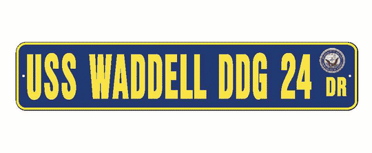 USS WADDELL DDG 24 Aluminum Street Sign Navy Blue / Yellow 6" x 30" Military USN SS002