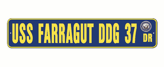 USS FARRAGUT DDG 37 Aluminum Street Sign Navy Blue / Yellow 6" x 30" Military USN SS002