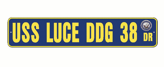 USS LUCE DDG 38 Aluminum Street Sign Navy Blue / Yellow 6" x 30" Military USN SS002