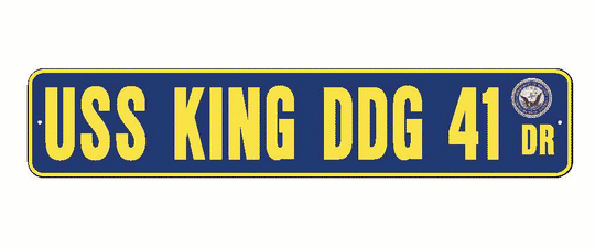 USS KING DDG 41 Aluminum Street Sign Navy Blue / Yellow 6" x 30" Military USN SS002