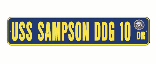 USS SAMPSON DDG 10 Aluminum Street Sign Navy Blue / Yellow 6" x 30" Military USN SS002