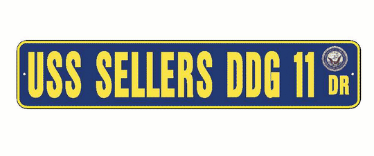 USS SELLERS DDG 11 Aluminum Street Sign Navy Blue / Yellow 6" x 30" Military USN SS002
