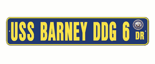 USS BARNEY DDG 6 Aluminum Street Sign Navy Blue / Yellow 6" x 30" Military USN SS002