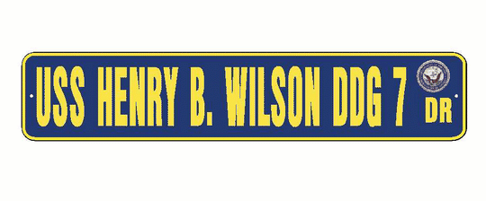 USS HENRY B WILSON DDG 7 Aluminum Street Sign Navy Blue / Yellow 6" x 30" Military USN SS002