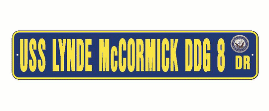 USS LYNDE McCORMICK DDG 8 Aluminum Street Sign Navy Blue / Yellow 6" x 30" Military USN SS002