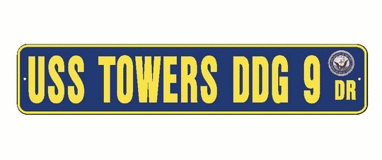 USS TOWERS DDG 9 Aluminum Street Sign Navy Blue / Yellow 6" x 30" Military USN SS002