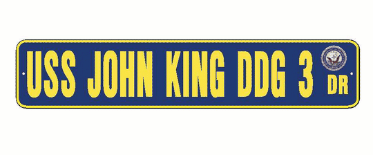 USS JOHN KING DDG 3 Aluminum Street Sign Navy Blue / Yellow 6" x 30" Military USN SS002