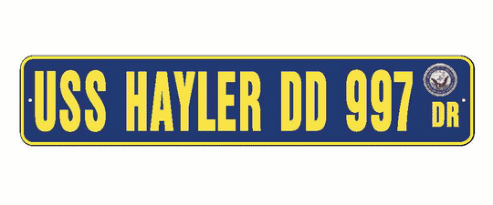USS HAYLER DD 997 Aluminum Street Sign Navy Blue / Yellow 6" x 30" Military USN SS002
