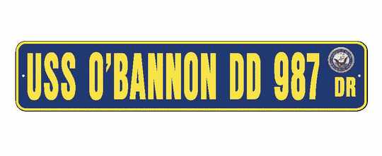 USS O"BANNON DD 987 Aluminum Street Sign Navy Blue / Yellow 6" x 30" Military USN SS002
