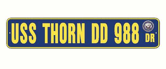 USS THORN DD 988 Aluminum Street Sign Navy Blue / Yellow 6" x 30" Military USN SS002