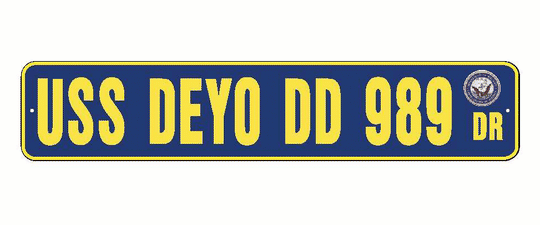 USS DEYO DD 989 Aluminum Street Sign Navy Blue / Yellow 6" x 30" Military USN SS002