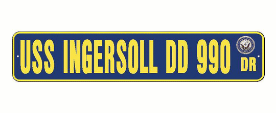 USS INGERSOLL DD 990 Aluminum Street Sign Navy Blue / Yellow 6" x 30" Military USN SS002