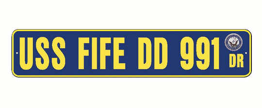 USS FIFE DD 991 Aluminum Street Sign Navy Blue / Yellow 6" x 30" Military USN SS002