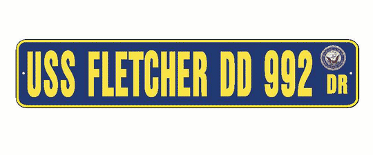 USS FLETCHER DD 992 Aluminum Street Sign Navy Blue / Yellow 6" x 30" Military USN SS002