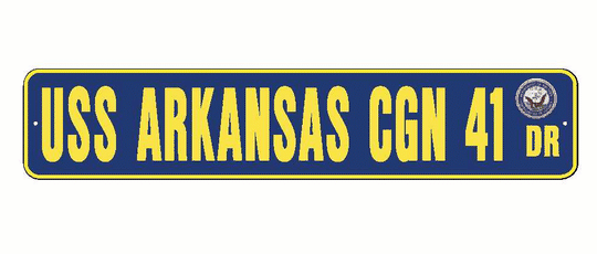 USS ARKANSAS CGN 41 Aluminum Street Sign Navy Blue / Yellow 6" x 30" Military USN SS002