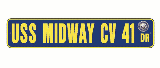 USS MIDWAY CV 41 Aluminum Street Sign Navy Blue / Yellow 6" x 30" Military USN SS002
