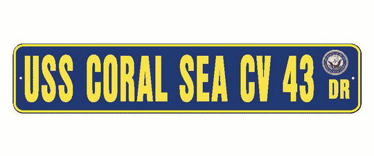 USS CORAL SEA CV 43 Aluminum Street Sign Navy Blue / Yellow 6" x 30" Military USN SS002