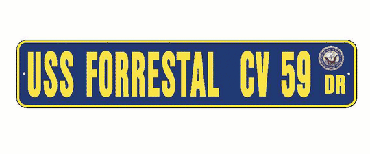 USS FORRESTAL CV 59 Aluminum Street Sign Navy Blue / Yellow 6" x 30" Military USN SS002