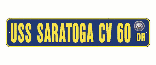 USS SARATOGA CV 60 Aluminum Street Sign Navy Blue / Yellow 6" x 30" Military USN SS002