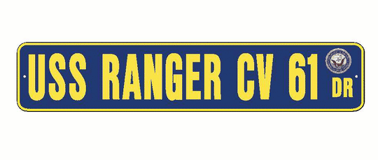 USS RANGER CV 61 Aluminum Street Sign Navy Blue / Yellow 6" x 30" Military USN SS002