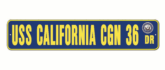 USS CALIFORNIA CGN 36 Aluminum Street Sign Navy Blue / Yellow 6" x 30" Military USN SS002