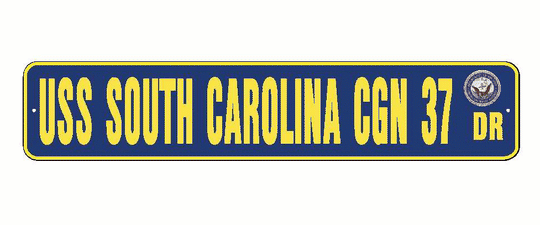 USS SOUTH CAROLINA CGN 37 Aluminum Street Sign Navy Blue / Yellow 6" x 30" Military USN SS002