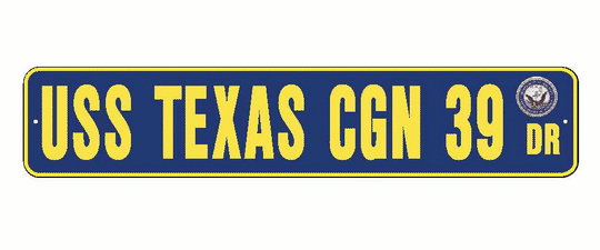 USS TEXAS CGN 39 Aluminum Street Sign Navy Blue / Yellow 6" x 30" Military USN SS002