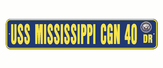 USS MISSISSIPPI CGN 40 Aluminum Street Sign Navy Blue / Yellow 6" x 30" Military USN SS002