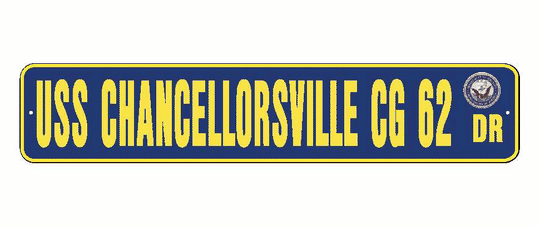 USS CHANCELLORSVILLE CG 62 Aluminum Street Sign Navy Blue / Yellow 6" x 30" Military USN SS002