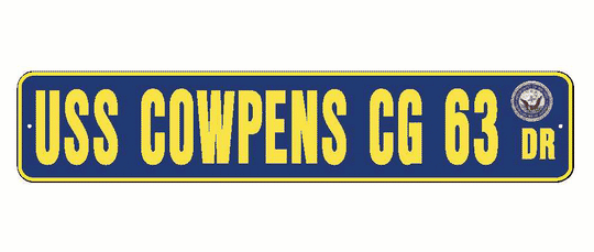 USS COWPENS CG 63 Aluminum Street Sign Navy Blue / Yellow 6" x 30" Military USN SS002