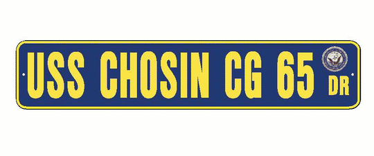 USS CHOSIN CG 65 Aluminum Street Sign Navy Blue / Yellow 6" x 30" Military USN SS002