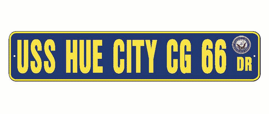 USS HUE CITY CG 66 Aluminum Street Sign Navy Blue / Yellow 6" x 30" Military USN SS002