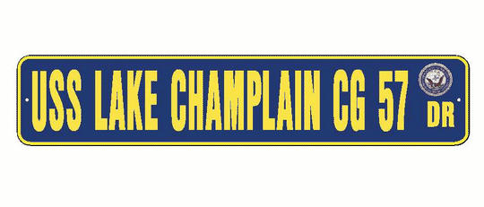 USS LAKE CHAMPLAIN CG 57 Aluminum Street Sign Navy Blue / Yellow 6" x 30" Military USN SS002