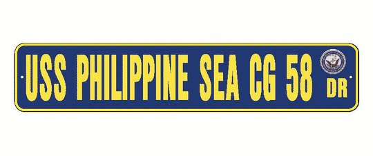 USS PHILIPPINE SEA CG 58 Aluminum Street Sign Navy Blue / Yellow 6" x 30" Military USN SS002