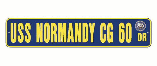 USS NORMANDY CG 60 Aluminum Street Sign Navy Blue / Yellow 6" x 30" Military USN SS002