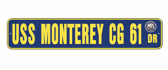 USS MONTEREY CG 61 Aluminum Street Sign Navy Blue / Yellow 6" x 30" Military USN SS002