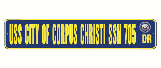 USS CITY OF CORPUS CHRISTI SSN 705 Aluminum Street Sign Navy Blue / Yellow 6" x 30" Military USN SS002