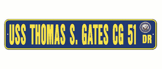 USS THOMAS S GATES CG 51 Aluminum Street Sign Navy Blue / Yellow 6" x 30" Military USN SS002
