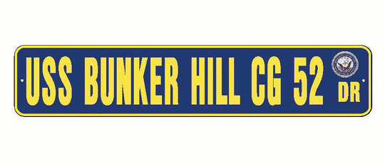 USS BUNKER HILL CG 52 Aluminum Street Sign Navy Blue / Yellow 6" x 30" Military USN SS002
