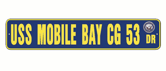 USS MOBILE BAY CG 53 Aluminum Street Sign Navy Blue / Yellow 6" x 30" Military USN SS002