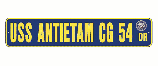 USS ANTIETAM CG 54 Aluminum Street Sign Navy Blue / Yellow 6" x 30" Military USN SS002