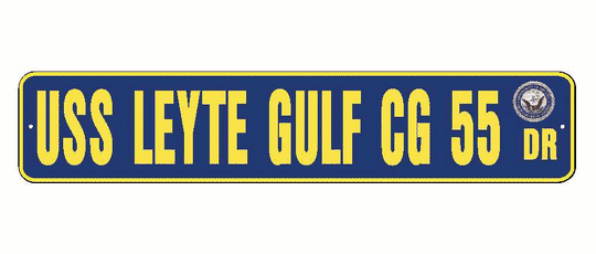 USS LAYTE GULF CG 55 Aluminum Street Sign Navy Blue / Yellow 6" x 30" Military USN SS002