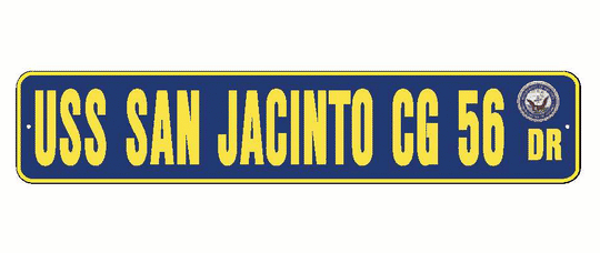 USS SAN JACINTO CG 56 Aluminum Street Sign Navy Blue / Yellow 6" x 30" Military USN SS002