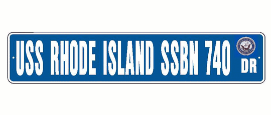 USS RHODE ISLAND SSBN 740 Aluminum Street Sign Blue / White 6" x 30" Military USN SS001