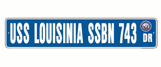 USS LOUISIANA SSBN 743 Aluminum Street Sign Blue / White 6" x 30" Military USN SS001